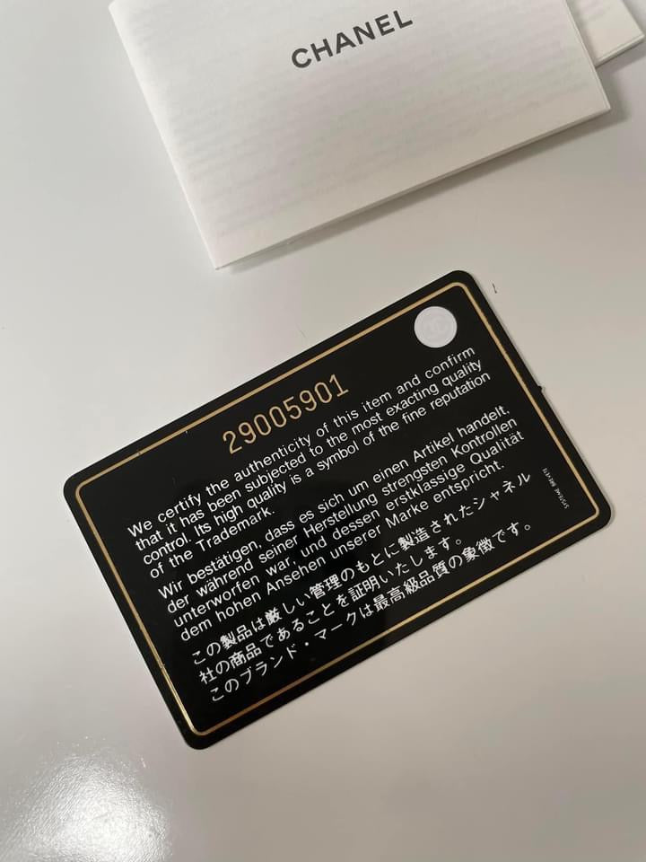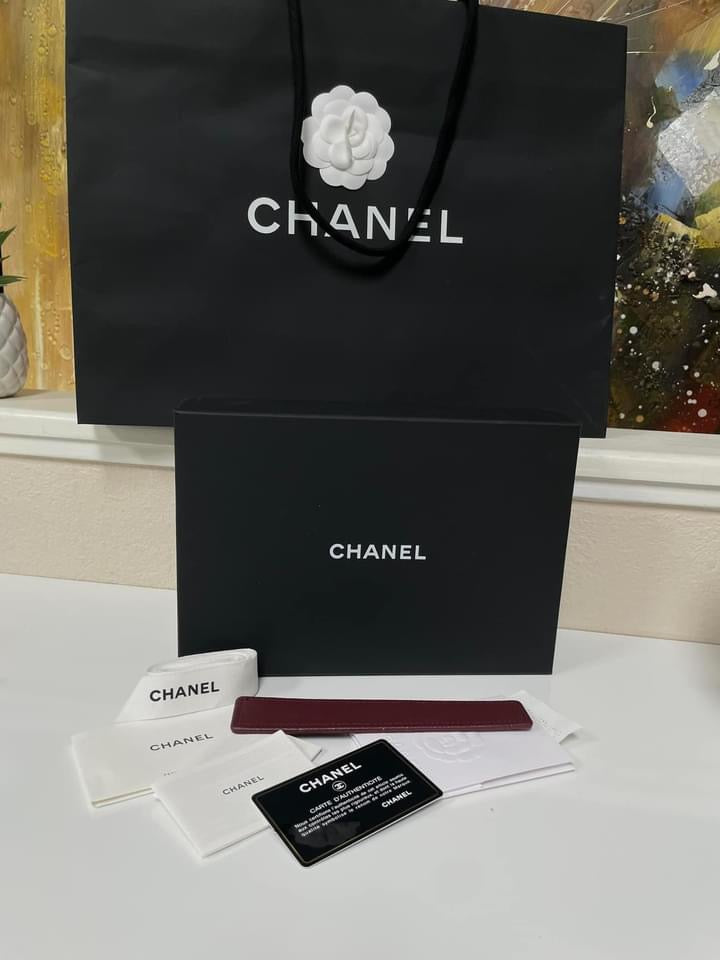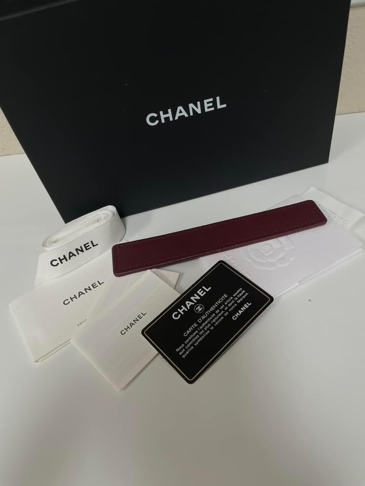 FULL SET: box, shopping bag with Camella flower, dustbag, care cards, authenticity card, original receipt with folder, ribbon, and complimentary base shaper.